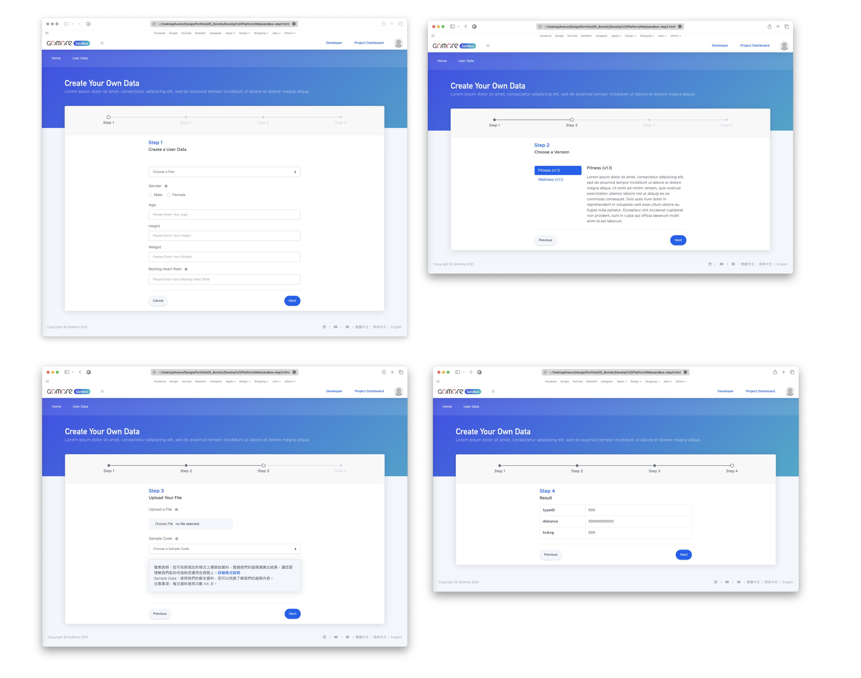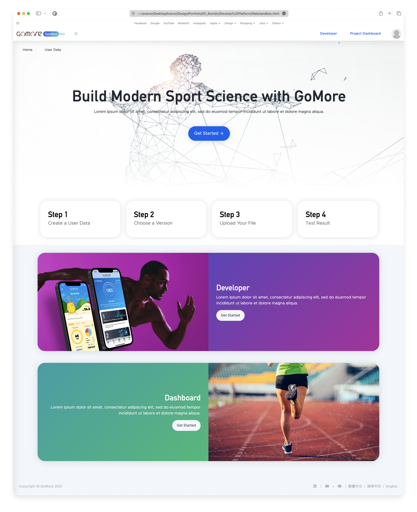 由於 GoMore 的運動指標項目非常多元,但缺乏系統化的整理,導致以往每次開發新客戶,皆需要藉由 BD 或 FAE 從中協助雙方溝通。開發者平台製作完成後,主要提供演算法相關的 API 及 SDK 供客戶下載使用,並透過系統化的文件整理,讓客戶都能瞭解公司演算法的各項運動指標該如何套用。
